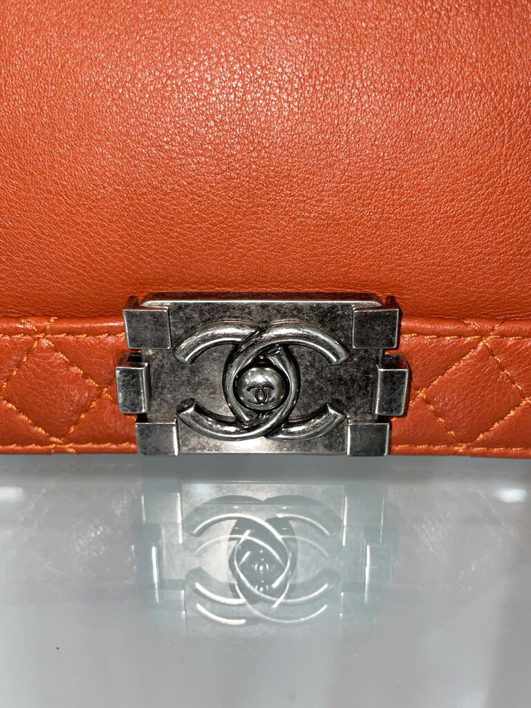 Chanel Blood Orange Leather Gunmetal Boy Bag